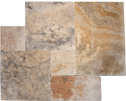 Scabos travertine pavers make a statement like no other stone. The blend of antique light coloring with darker shades of charcoal, deep burgundy and colors that could not be imagined a true product of our beautiful planet.